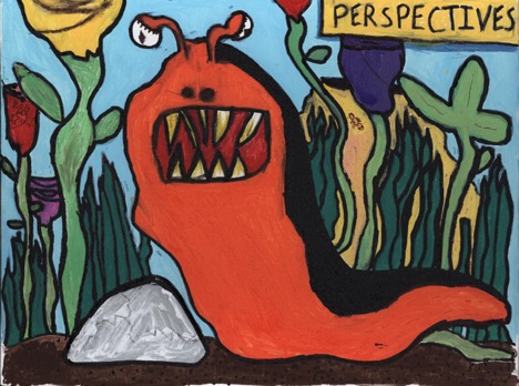 This is one of the few paintings in my submission that was done with Oil Paint. I call this one “Perspectives.” This painting reminds me not make mountain’s out of ant-hills. Not every problem you will have in your life is a giant-slug. Most problems are more like regular slugs when you really take a second to think about your issues.