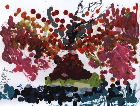 I call this one “Kilauea.” In my opinion this painting clearly looks like an exploding volcano. I have had so many people tell me, it looks like a tree. That is the beauty of abstract. Really there is no right answers to this work or any work of abstract art in my oh so humble opinion. I may have had a volcano in mind, but I can also see a tree.